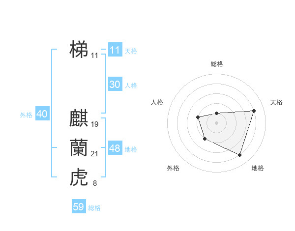 梯 麒蘭虎さんの総格は59画の1点!