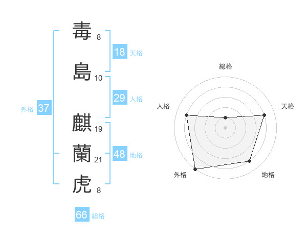 毒島 麒蘭虎さんの総格は66画の1点!