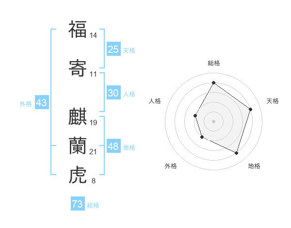 福寄 麒蘭虎さんを姓名の画数から五運を鑑定