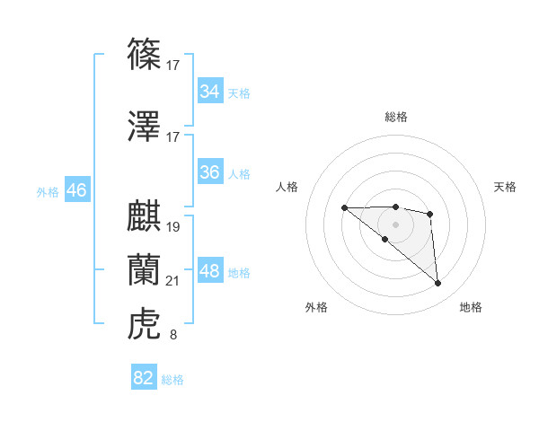 篠澤 麒蘭虎さんの総格は82画の1点!