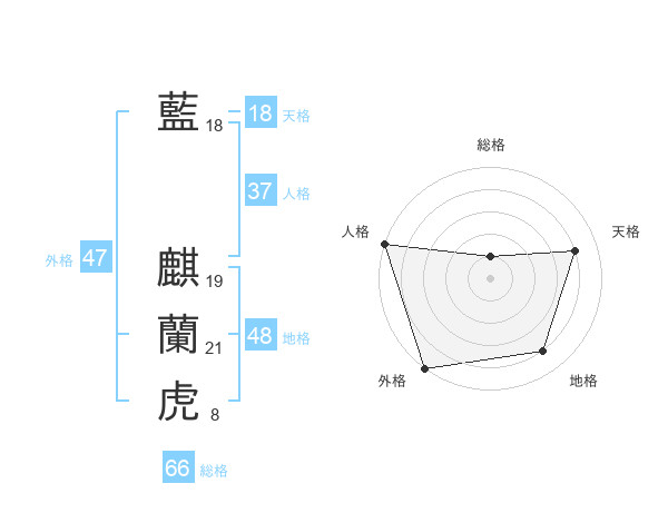 藍 麒蘭虎さんを姓名の画数から五運を鑑定
