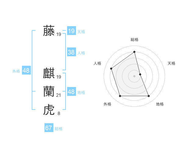 藤 麒蘭虎さんを姓名の画数から五運を鑑定