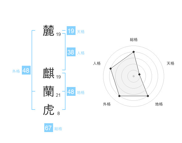 麓 麒蘭虎さんの総格は67画の4点!