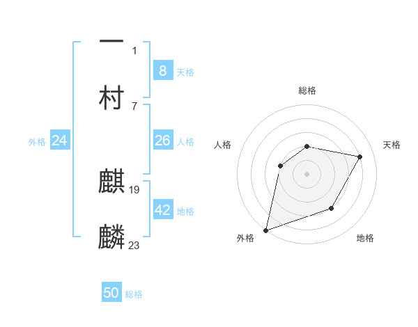 一村 麒麟さんの総格は50画の2点!