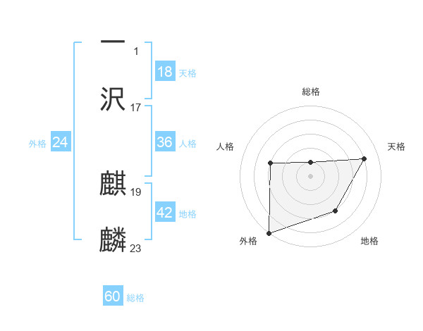 一沢 麒麟さんの総格は60画の1点!