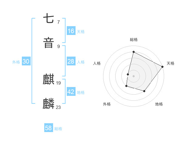 七音 麒麟さんを姓名の画数から五運を鑑定