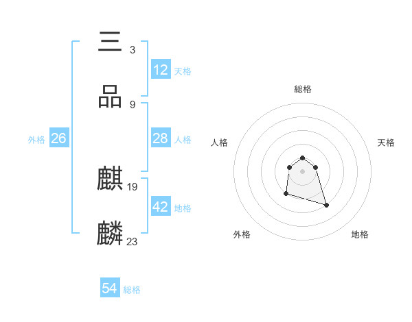 三品 麒麟さんの総格は54画の1点!