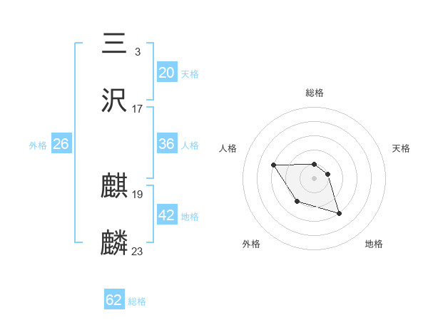 三沢 麒麟さんの天格は20画の1点!