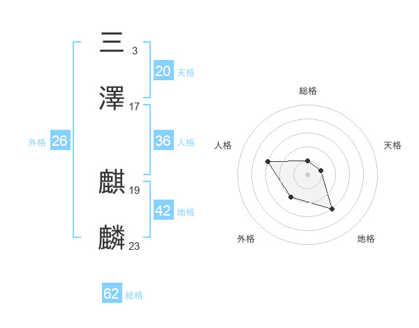 三澤 麒麟さんを姓名の画数から五運を鑑定