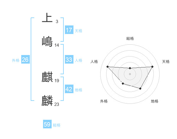 上嶋 麒麟さんを姓名の画数から五運を鑑定