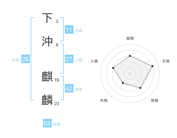 下沖 麒麟さんの総格は53画の3点!