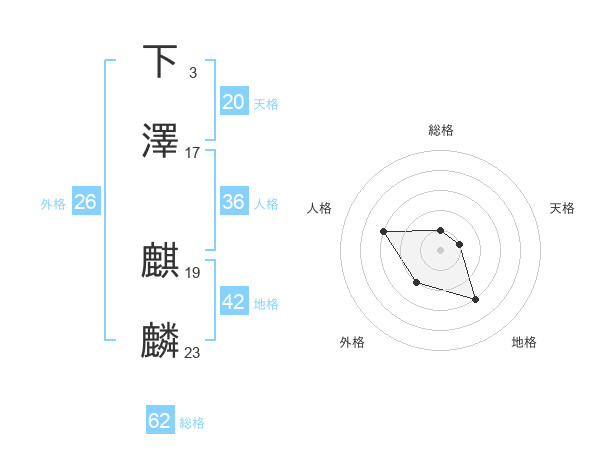 下澤 麒麟さんの総格は62画の1点!