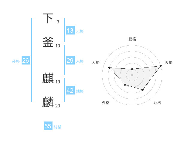下釜 麒麟さんを姓名の画数から五運を鑑定