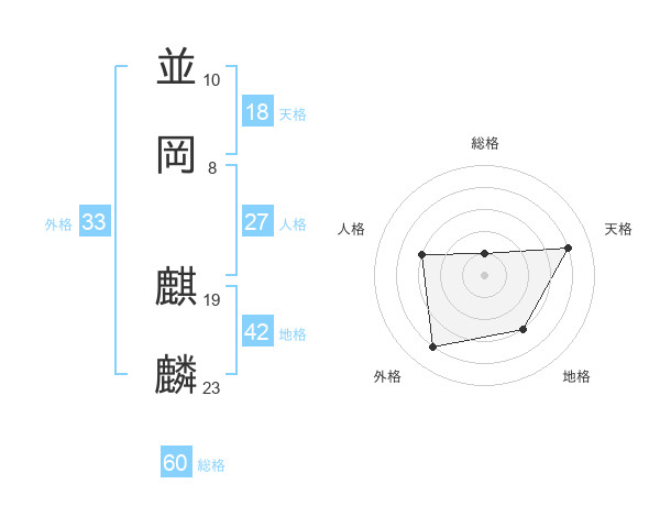 並岡 麒麟さんの総格は60画の1点!