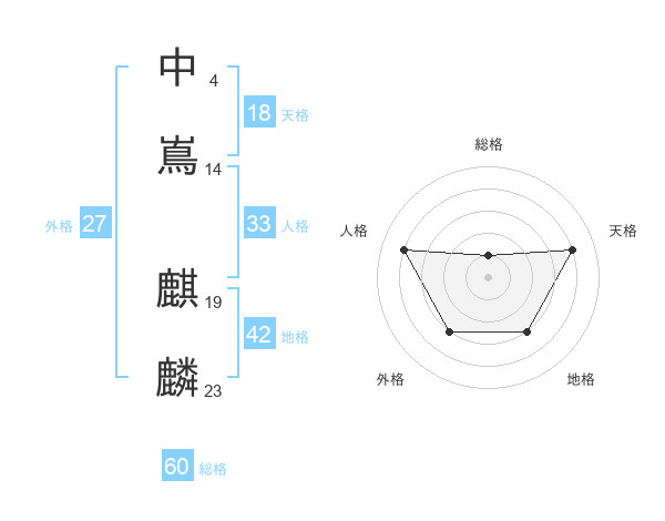中嶌 麒麟さんの総格は60画の1点!