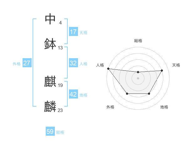 中鉢 麒麟さんの総格は59画の1点!