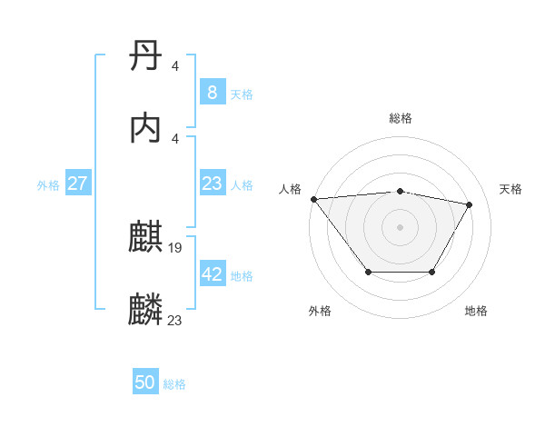 丹内 麒麟さんを姓名の画数から五運を鑑定