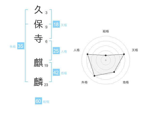 久保寺 麒麟さんの総格は60画の1点!