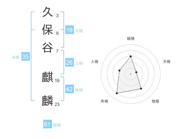 久保谷 麒麟さんの総格は61画の3点!