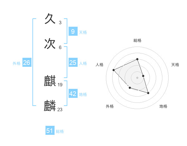 久次 麒麟さんの総格は51画の3点!