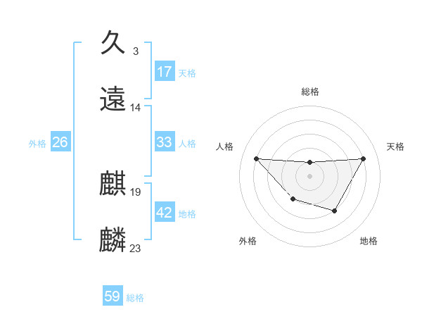 久遠 麒麟さんの天格は17画の4点!