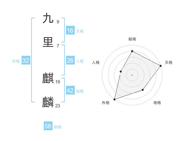 九里 麒麟さんの総格は58画の4点!