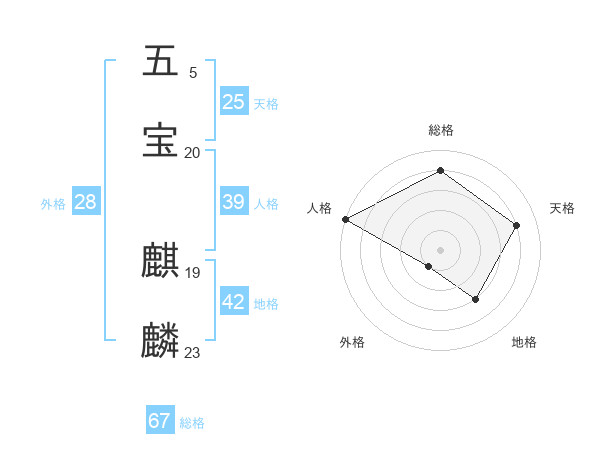 五宝 麒麟さんを姓名の画数から五運を鑑定