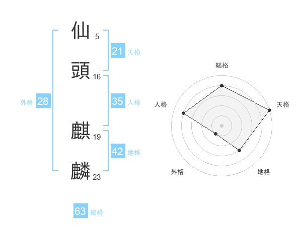 仙頭 麒麟さんを姓名の画数から五運を鑑定