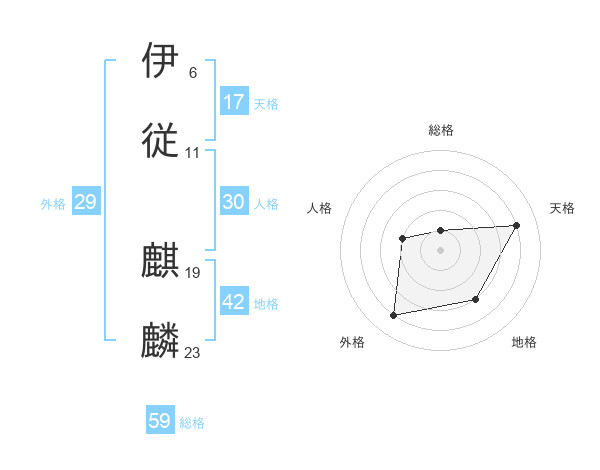 伊従 麒麟さんを姓名の画数から五運を鑑定