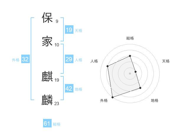保家 麒麟さんの総格は61画の3点!