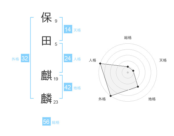 保田 麒麟さんの外格は32画の5点!
