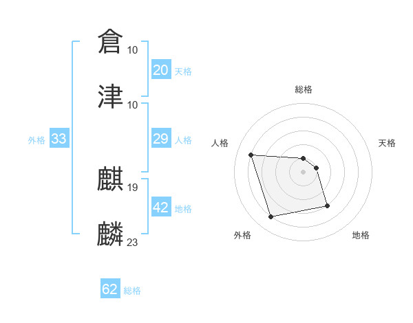 倉津 麒麟さんを姓名の画数から五運を鑑定