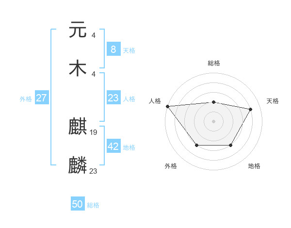 元木 麒麟さんの総格は50画の2点!