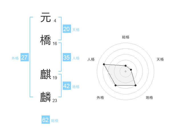 元橋 麒麟さんを姓名の画数から五運を鑑定