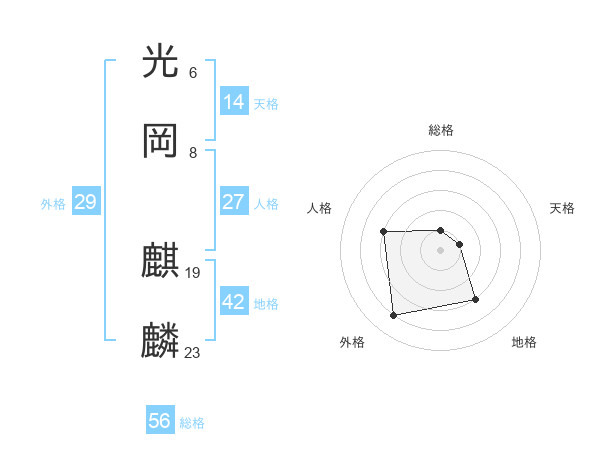光岡 麒麟さんを姓名の画数から五運を鑑定
