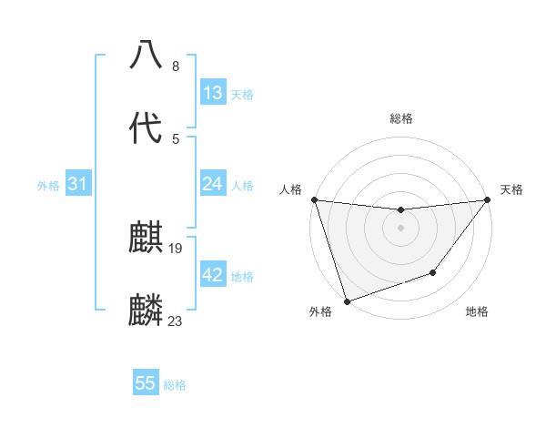 八代 麒麟さんを姓名の画数から五運を鑑定