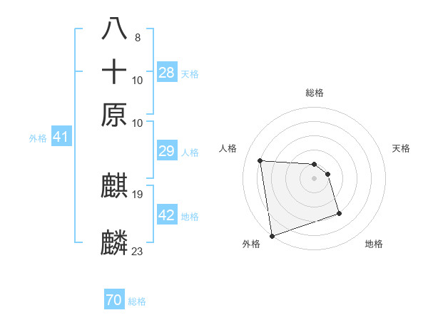 八十原 麒麟さんの総格は70画の1点!