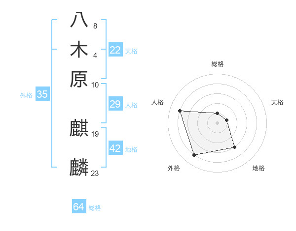 八木原 麒麟さんの総格は64画の1点!