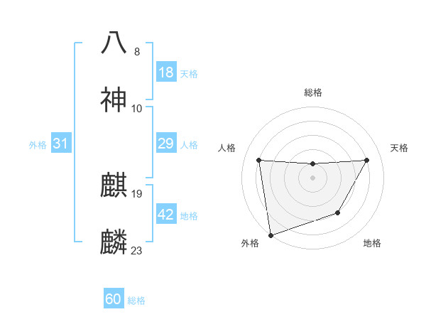 八神 麒麟さんを姓名の画数から五運を鑑定