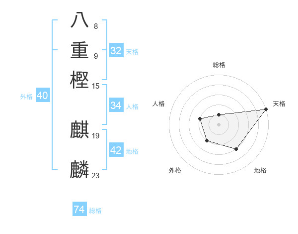 八重樫 麒麟さんを姓名の画数から五運を鑑定
