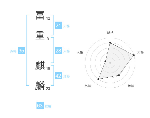 冨重 麒麟さんの総格は63画の4点!