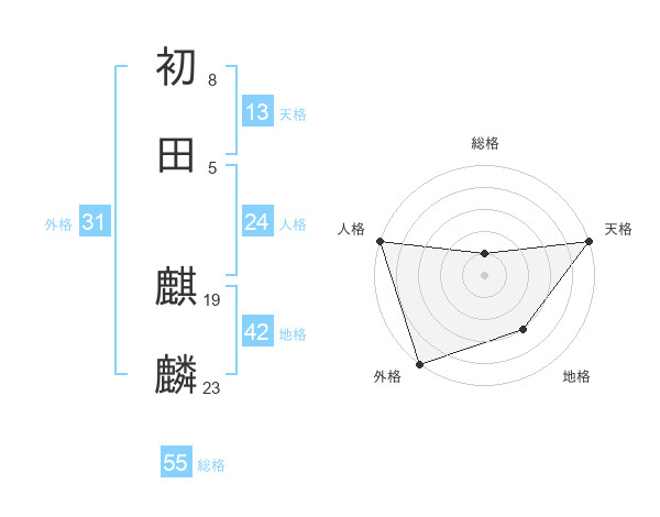 初田 麒麟さんを姓名の画数から五運を鑑定