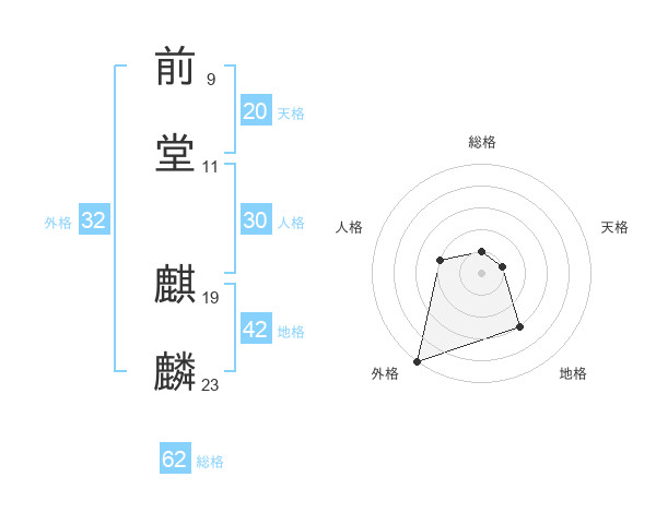 前堂 麒麟さんの外格は32画の5点!