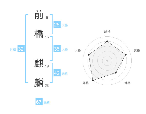 前橋 麒麟さんの総格は67画の4点!