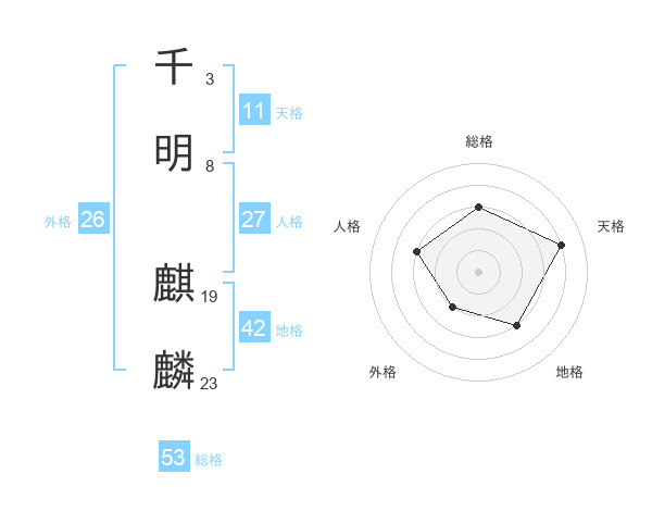 千明 麒麟さんを姓名の画数から五運を鑑定