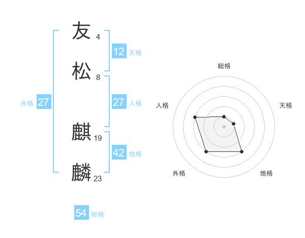 友松 麒麟さんを姓名の画数から五運を鑑定