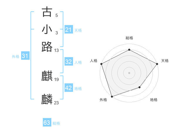 古小路 麒麟さんの天格は21画の5点!