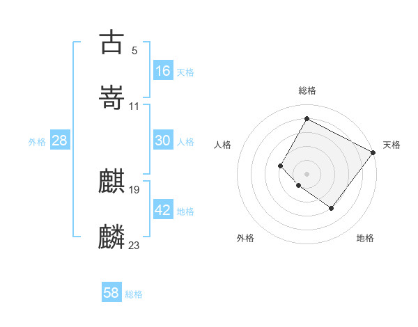 古嵜 麒麟さんを姓名の画数から五運を鑑定