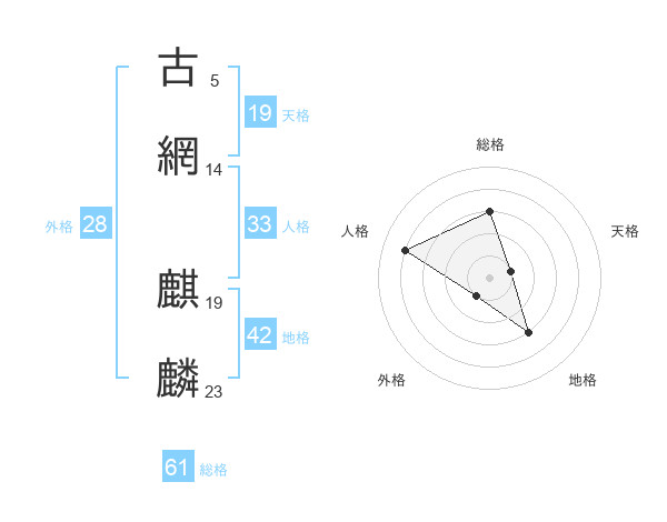 古網 麒麟さんを姓名の画数から五運を鑑定