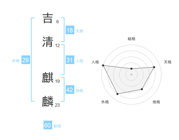 吉清 麒麟さんの総格は60画の1点!